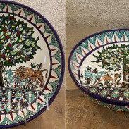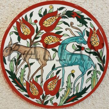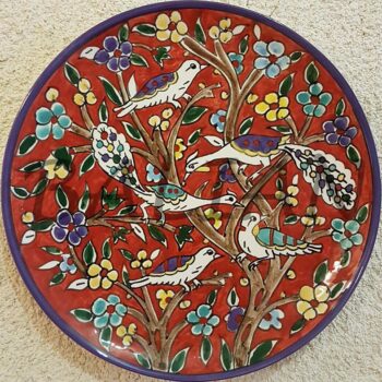 The Balian Studio of Jerusalem has been producing hand painted decorative plates and collector plates for more than 100 years now. We manufacture our own plates from the best white firing raw clay imported from Italy. After bisque firing them in ceramic kilns to a temperature of more than 1000 Centigrade , the decorative plates are hand painted and then fired again to about 1000 Centigrade. We use European lead free glazes for food safety. Our decorative plates can be used both as a functional dinner plate item and also decorative ,,,such as hanging on kitchen walls etc.