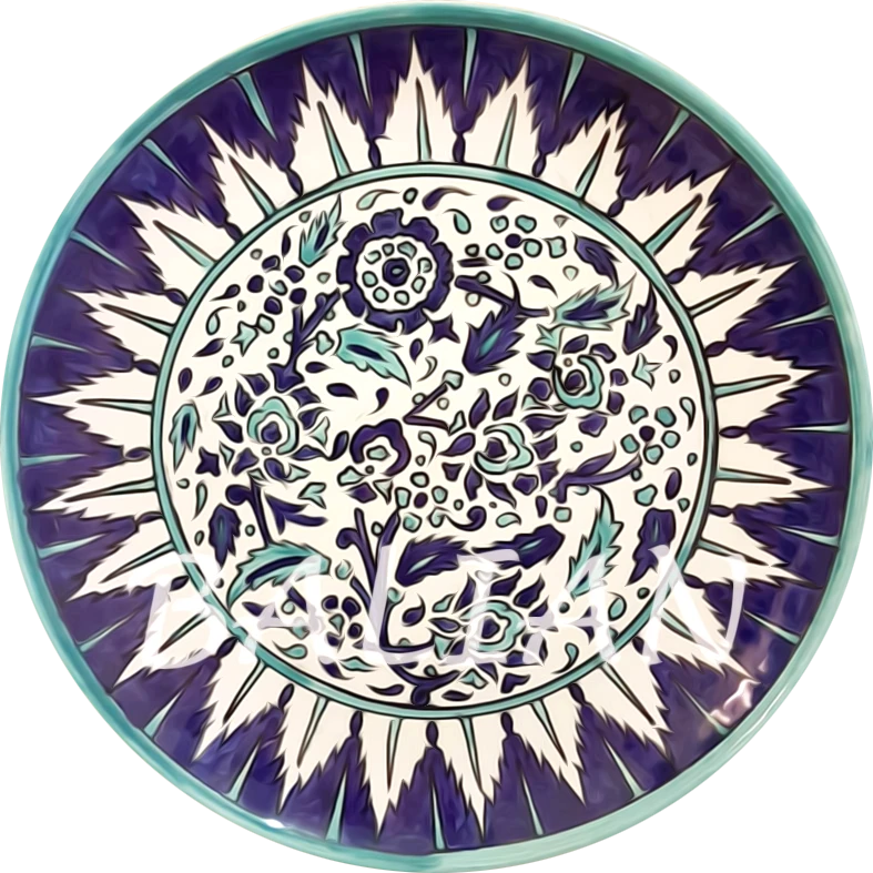 For over a century, The Balian Studio of Jerusalem has crafted exquisite hand-painted decorative and collector plates using premium Italian white firing raw clay. Fired twice at temperatures exceeding 1000°C and adorned with European lead-free glazes for food safety, our plates are both functional and decorative, suitable for use in dining and as kitchen decor. Explore various sizes available on our website. Designed by the late Marie Balian, our plates continue a rich tradition of artistry and heritage, carrying on her legacy of creativity and excellence.
