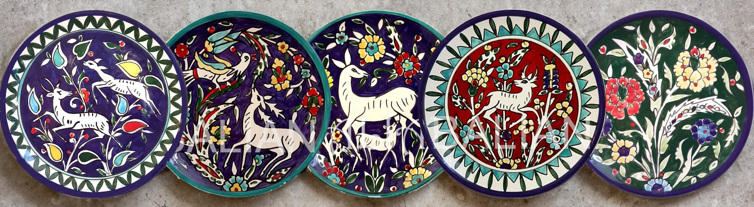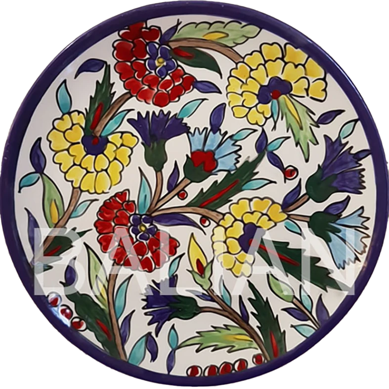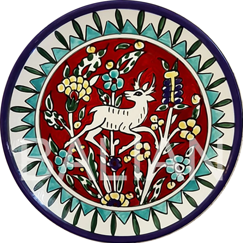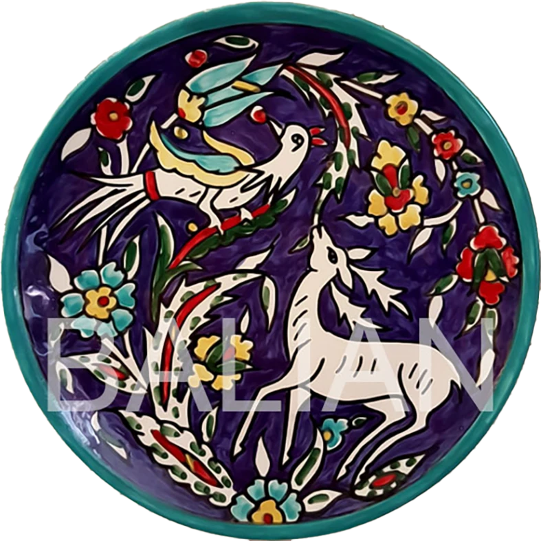 For over 100 years, Balian Studio of Jerusalem has been crafting exquisite hand-painted decorative wall plates and collector plates, continuing a rich tradition of Armenian ceramic artistry. Our decorative plates are made in-house using premium white-firing clay imported from Italy, ensuring durability and exceptional quality. Each plate undergoes a meticulous process, first bisque-fired at over 1000°C in ceramic kilns and then hand-painted with intricate designs before being fired again at high temperatures. We use European lead-free glazes, making our plates both food-safe and ideal for display. Our decorative wall plates serve as functional dinnerware or as elegant wall decor, perfect for adding a touch of artistic heritage to kitchens, dining rooms, or living spaces. Many of our signature designs were created by the renowned Marie Balian, and we proudly continue this timeless legacy.