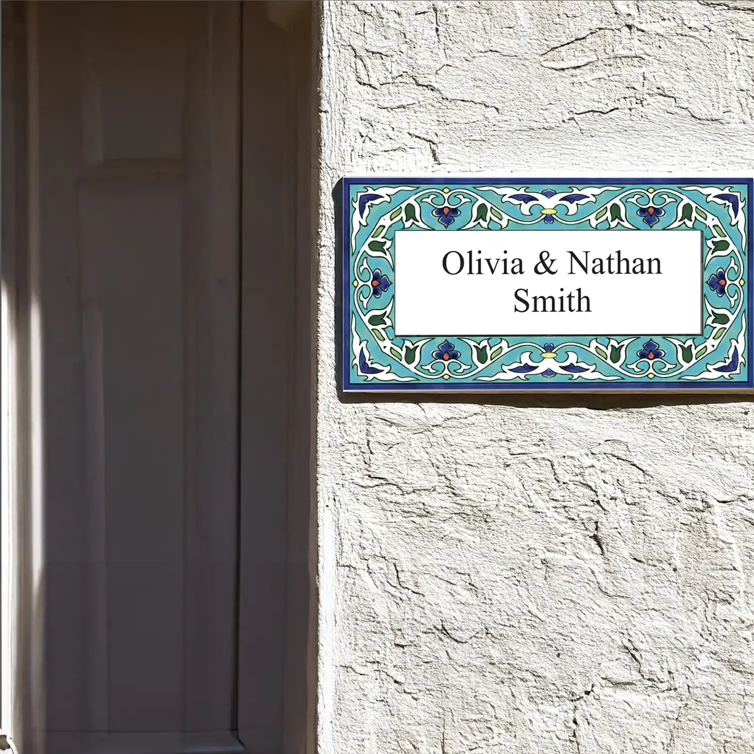 Address Plaques made of hand-decorated ceramics and fired to 1000 °C.  Send us the style number and desired inscription. We will send a layout for your approval. Optional languages and fonts available for the ceramic address plaques.