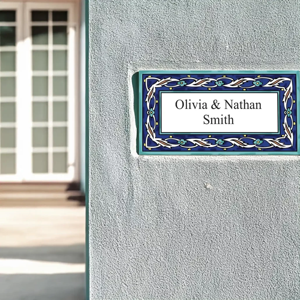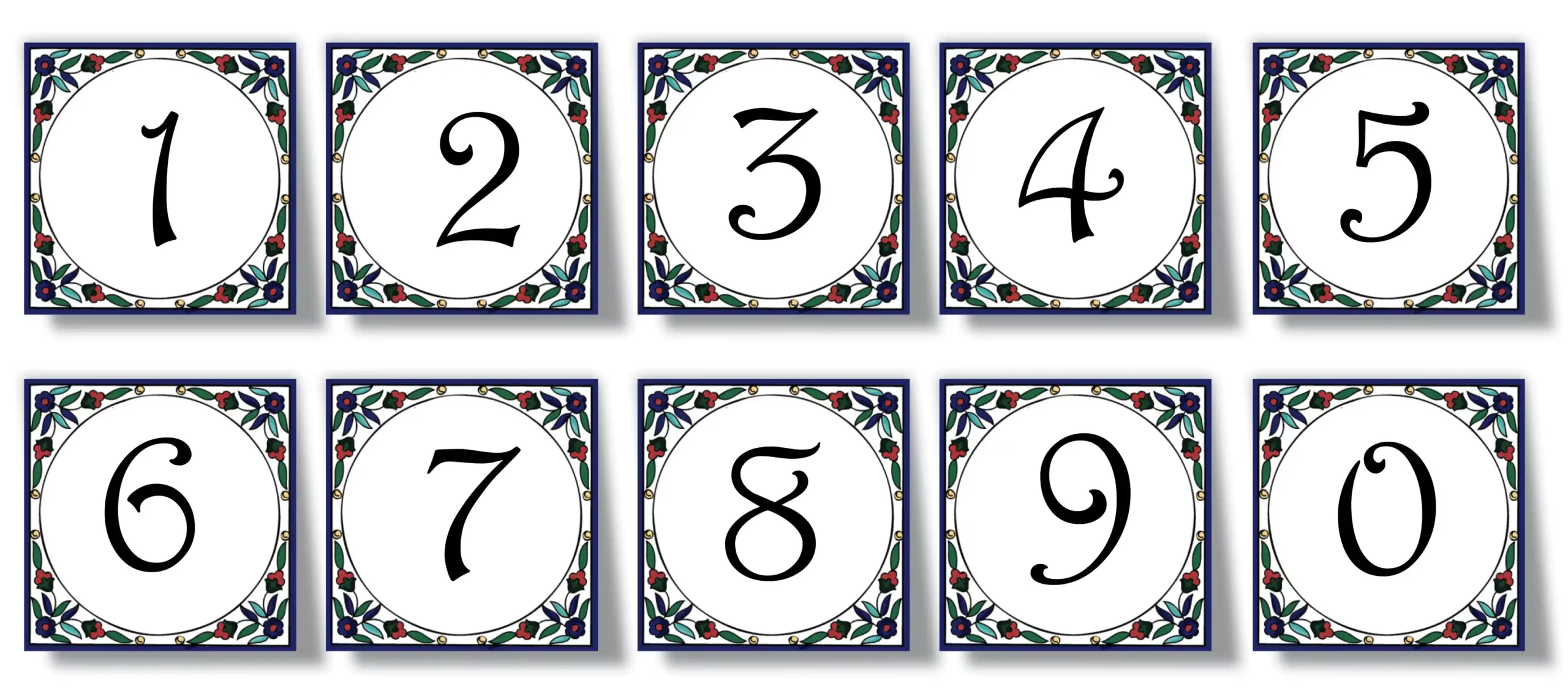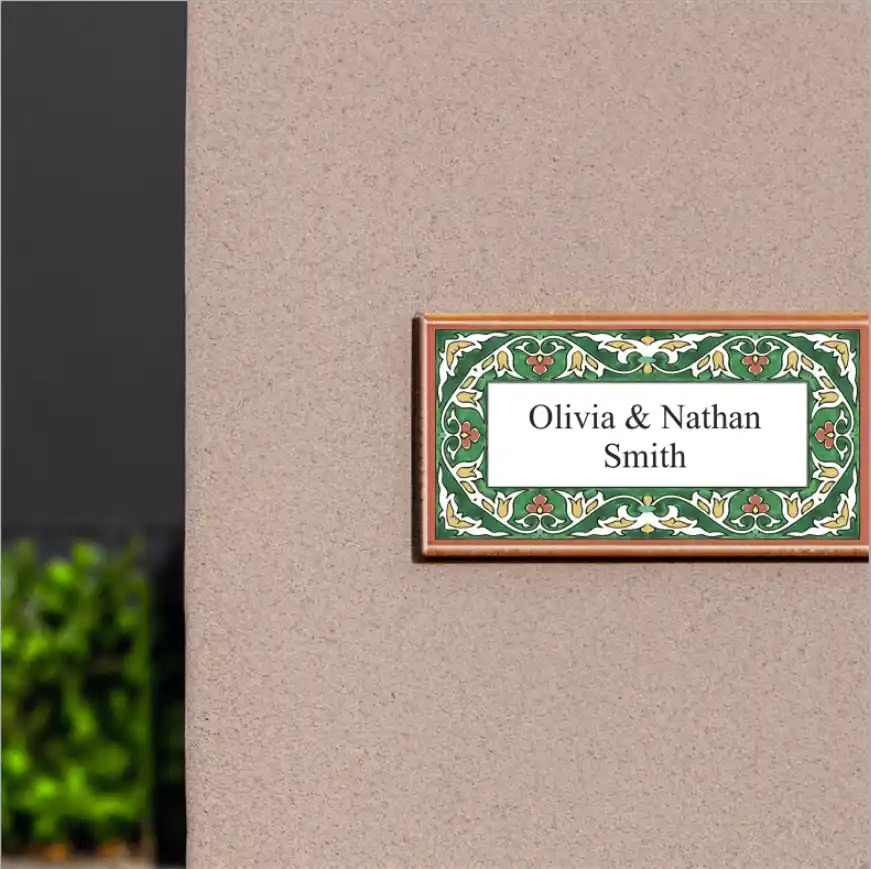 Address Plaques made of hand-decorated ceramics and fired to 1000 °C.  Send us the style number and desired inscription. We will send a layout for your approval. Optional languages and fonts available for the ceramic address plaques.