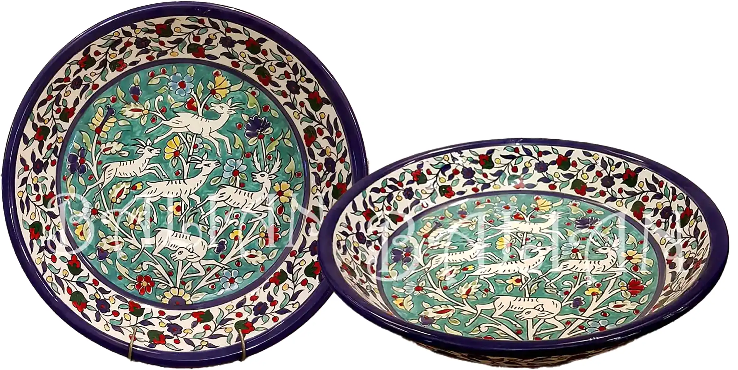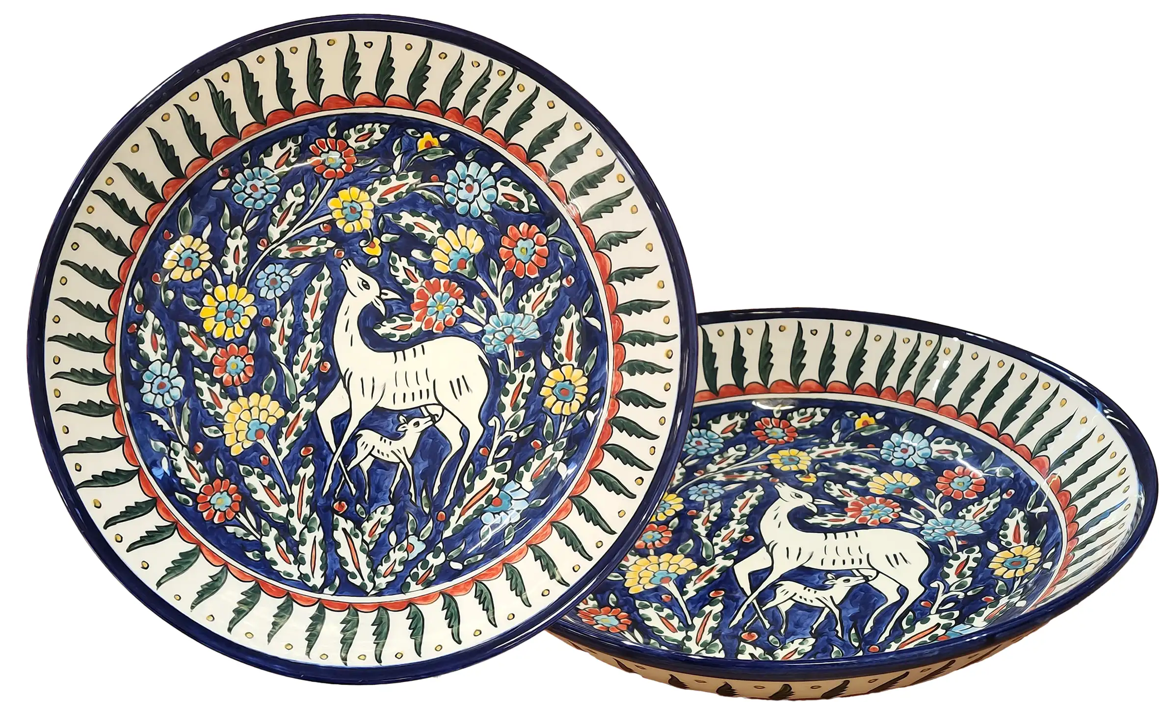 Since 1922, The Balian Studio of Jerusalem has been crafting exquisite hand-painted pottery items, including decorative bowls, fruit bowls, salad bowls, and centerpiece bowls. Each bowl is meticulously hand-painted and fired at temperatures up to 1000°C, ensuring exceptional durability and beauty. Adorned with intricate paintings of gazelles, birds, and flowers, our bowls add a truly spectacular touch to any home or interior setting.